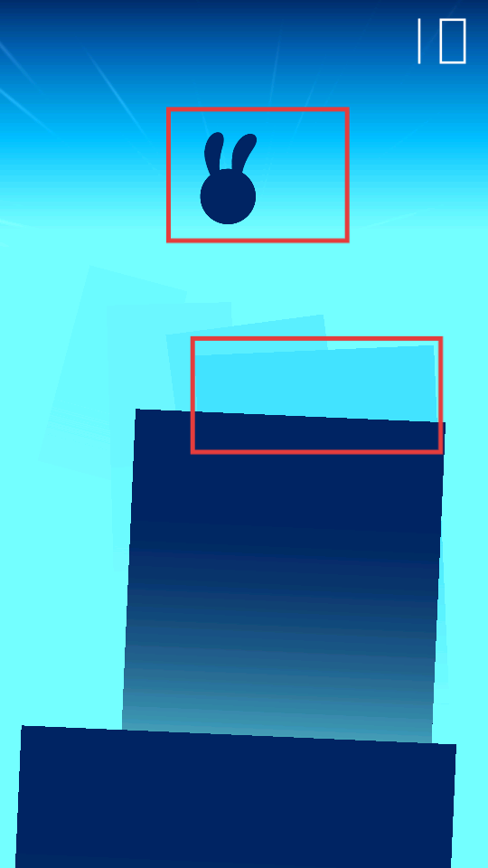 2、游戏中需要把握点击的节奏,让兔子在蓝色平台间灵活跳跃,保持前进,避免掉落。