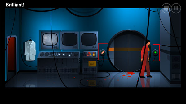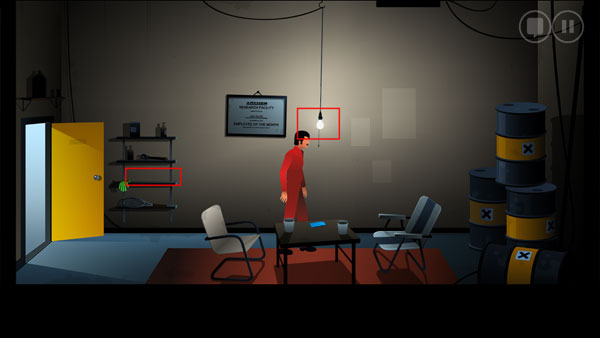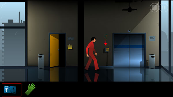 11、再次回到实验室最右边的房间,用创可贴固定左边的按钮,然后点击右边按钮打开房门。