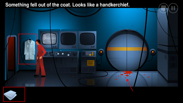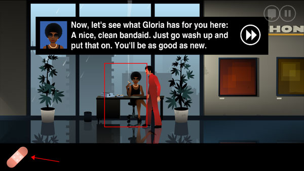 10、点击白色的大褂获取餐巾纸,然后将餐巾纸用于右边地下的血迹。之后回到秘书(BOSS房间外的女性角色)处,与她交谈可获得创可贴。