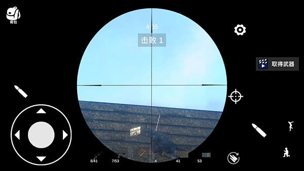 3、左下角的虚拟摇杆用于控制角色移动,右侧的准星图标用于瞄准敌人,而子弹图标则负责开火攻击。