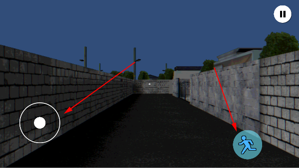 2、点击后游戏将正式启动,左侧区域用来控制角色的移动方向,右侧则可以进行奔跑操作。