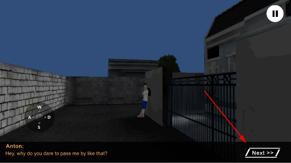 3、当你走到指定地点时会触发剧情内容,若不想观看可以点击右下角的 Next 来跳过剧情。