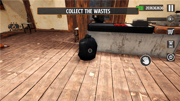4、走进加油站的小屋,点击拾取房屋里的垃圾,清理环境;