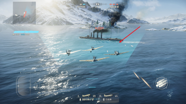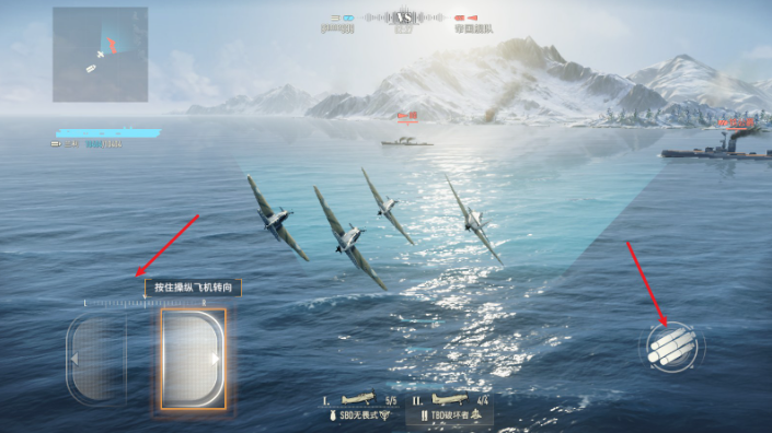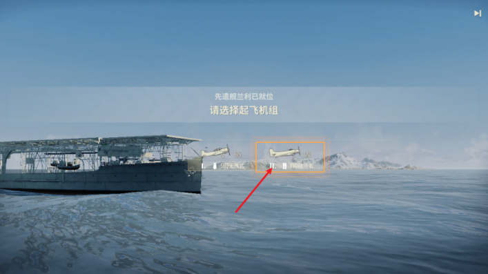 2、在海战正式开启前,玩家可先操控飞机执行首轮空袭,选择合适的编队进行先发制人的打击。