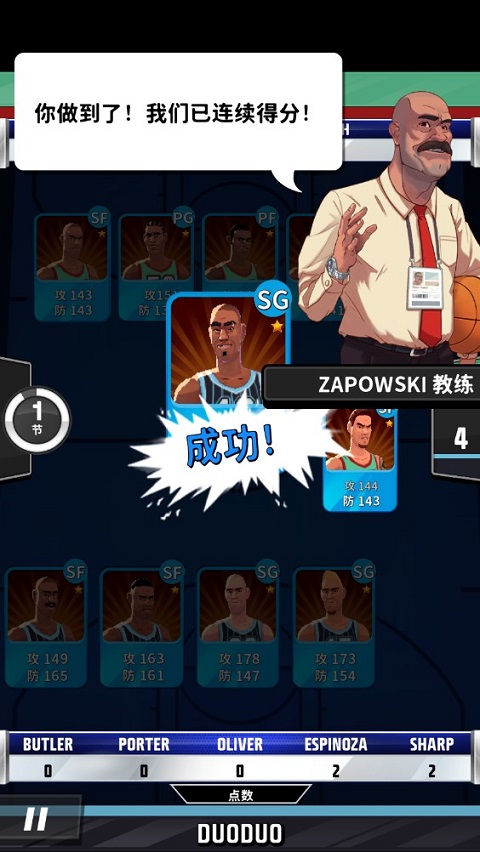 2、初始时,玩家将拥有一些基础球队成员,其中SF代表小前锋,SG代表得分后卫,玩家可以根据这些角色的特点来规划自己的战术。