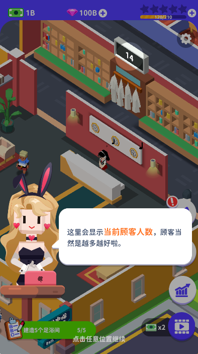 3、在游戏中,玩家会有自己的洗脚城,可以通过放置各种设施来吸引客人前来洗脚。