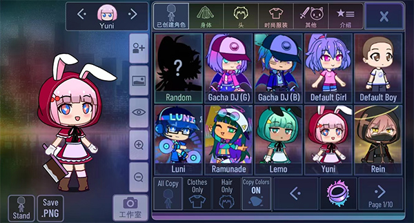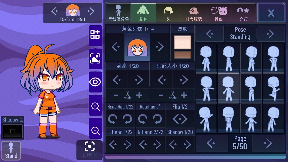 2、创建角色后,可以修改身体和头部的图像属性,也可以为角色穿上时尚的衣服。