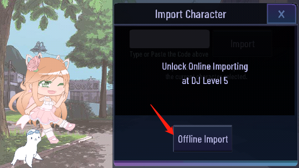 3、然后划掉“导出字符”,返回导入界面,点击“输入”进入“导入字符”,点击“离线导入”。