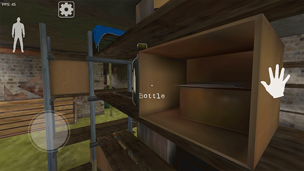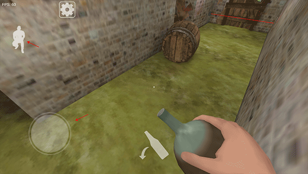 2、通过滑动摇杆来操控角色移动,同时点击左上角的“人物”按钮可以让角色进行下蹲操作。