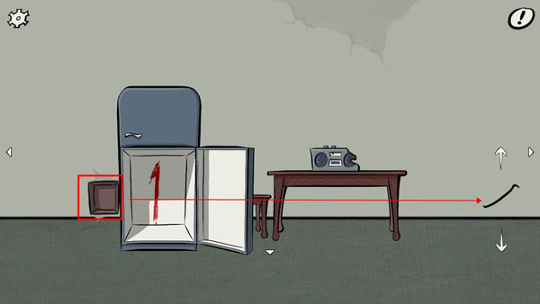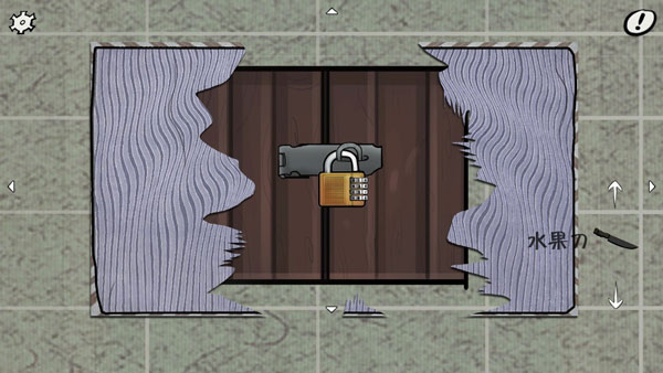 点击卧室地上的三角形标记,用水果刀将其划开,会露出一个锁,结合放花瓶的柜子上报纸提供的提示,以及有冰箱房间桌上照片给出的信息(日期的最后一位),可以推断密码为:7391。输入密码后即可进入地下室。