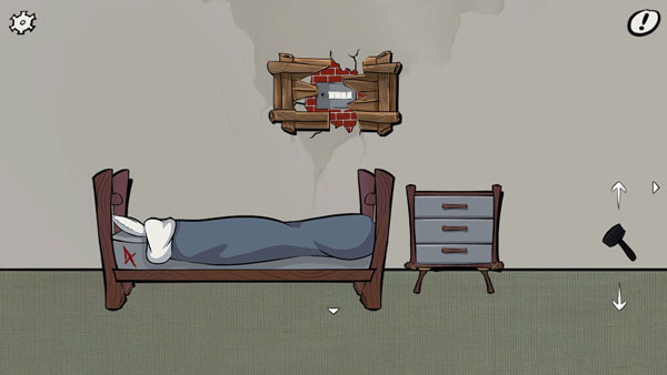 回到卧室,用锤子砸开墙壁,会出现一个保险柜,根据床头的数字4、报纸上的2、浴室镜子上的6以及冰箱里的1,可以得出密码为:4216,不过此时直接输入密码还无法打开保险柜。