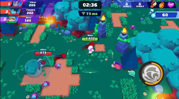 2、进入游戏后,滑动左侧轮盘来控制角色移动方向,右侧按钮用于进行攻击操作。