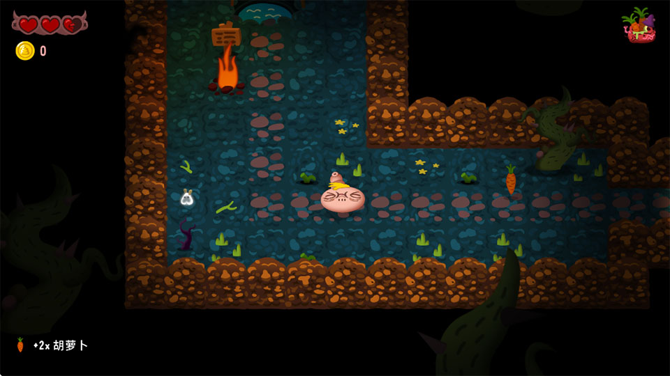 3、进入操作阶段后,滑动屏幕,就能操控角色移动并收集场景里的胡萝卜。