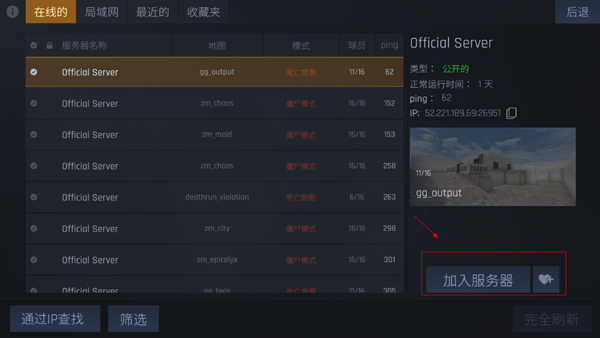 3、然后选择一个游戏模式,点击[加入服务器]。