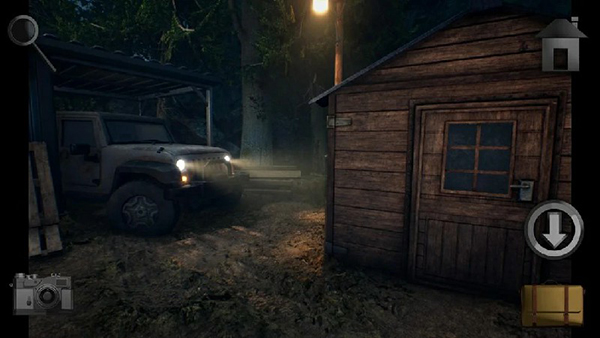 2、离开家后,我注意到保险丝盒损坏了,太高了,够不着,回到通往海滩的左侧小路上,登上小船,找到车钥匙,打开车灯照亮前面的小房子。