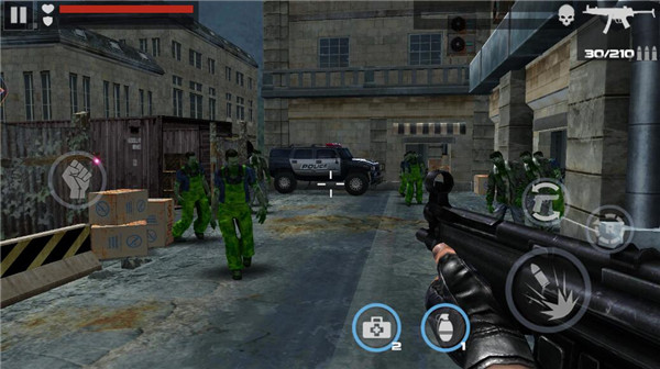 3、进入游戏并射击所有僵尸以通过关卡,注意健康条,一旦你的生命值耗尽,游戏就会被认为是失败的,当敌人很多的时候,你可以用手雷快速的对付他们。