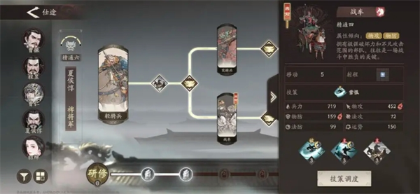 战车线必选。战车攻击范围为一圈,相比骑兵的4格范围能打到更多敌人,触发雪恨效果更强,同时吸血量更可观,保证夏侯惇的续航。移动力在这里并非首要考量。
