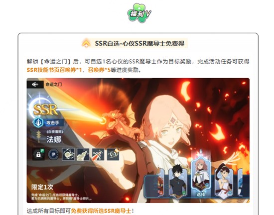 解锁“命运之门”系统后,可在多名SSR角色中自由选择一名作为奖励。