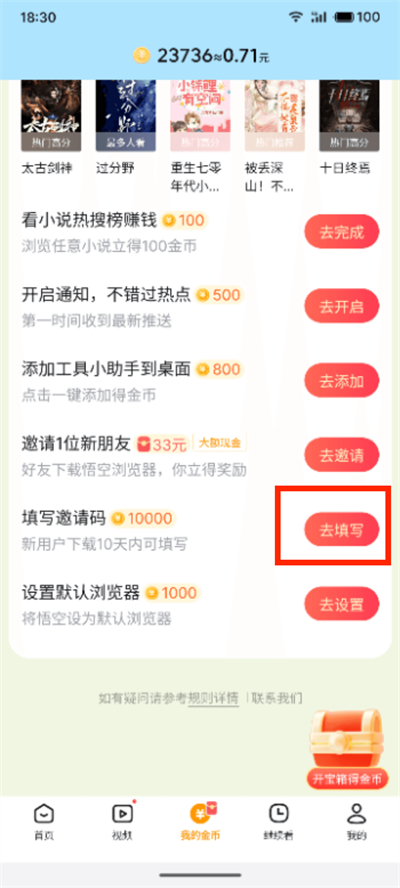在悟空浏览器中,用户不仅可以观看丰富的短剧、电视剧和小说内容,还可以通过这些观看行为获得金币奖励。当金币累计到一定数量后,用户即可将其兑换为现金红包,实实在在享受边看边赚的乐趣。此外,悟空浏览器还提供了邀请码功能,用户通过填写邀请码能够快速获得大量金币奖励。那么如何填写邀请码呢?现在就让指玩手游网的小编为大家带来关于《悟空浏览器》填写邀请码方法的全部内容吧,感兴趣的小伙伴一定不要错过哦。