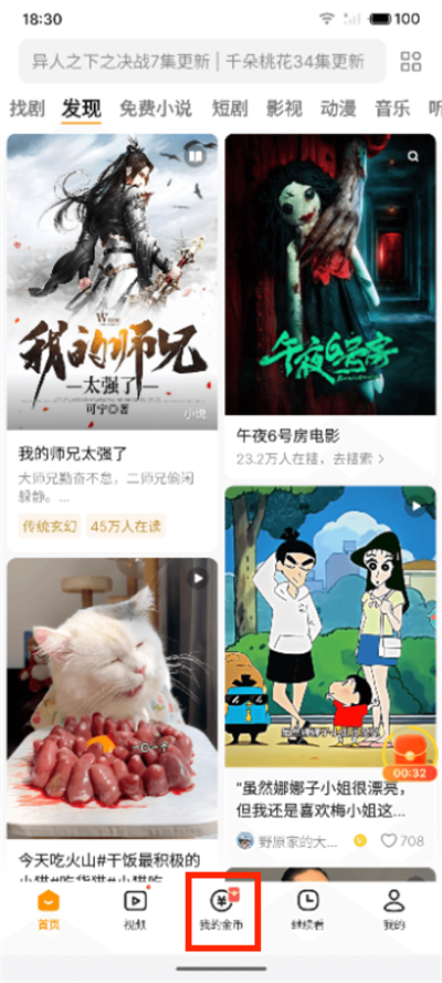 1、打开悟空浏览器,进入首页,点击下方的【我的金币】。
