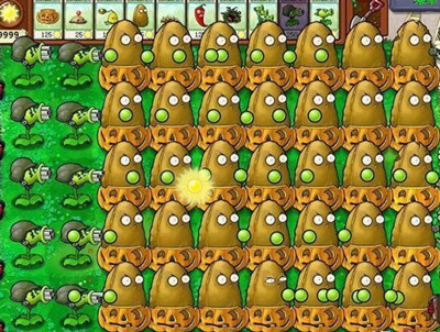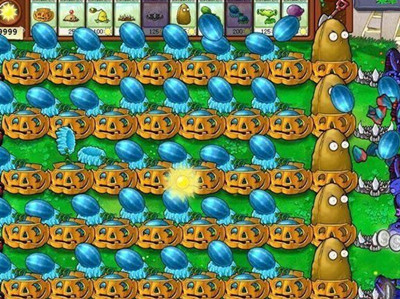 以防御为主,前排种植7排高坚果并套上南瓜头,能有效抵挡大部分敌人(除巨人僵尸外)。虽然节奏较慢,但能稳固防线,给玩家提供充足时间发展后方经济。