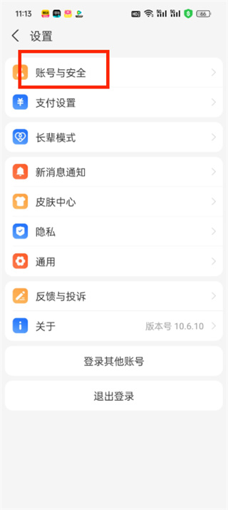 3、进入设置后选择【账号与安全】;