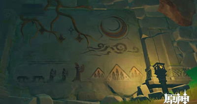 3、继续往深处走会发现雷灵和指针机关,此时抬头观察天花板上的壁画。