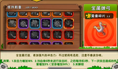 分析:金属弹弓提供全植二最高的纯攻击加成,适用范围广,且附带冷却缩减,尤其适合无属性攻击植物如牛蒡。待机增伤效果存在折扣,生效植物有限。总体来看,金属弹弓是除时钟外的优先选择。