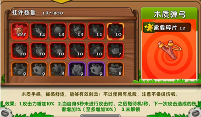 分析:纯攻击加成挂件,是金属弹弓的替代品。无金属弹弓时,木质弹弓依然值得培养。