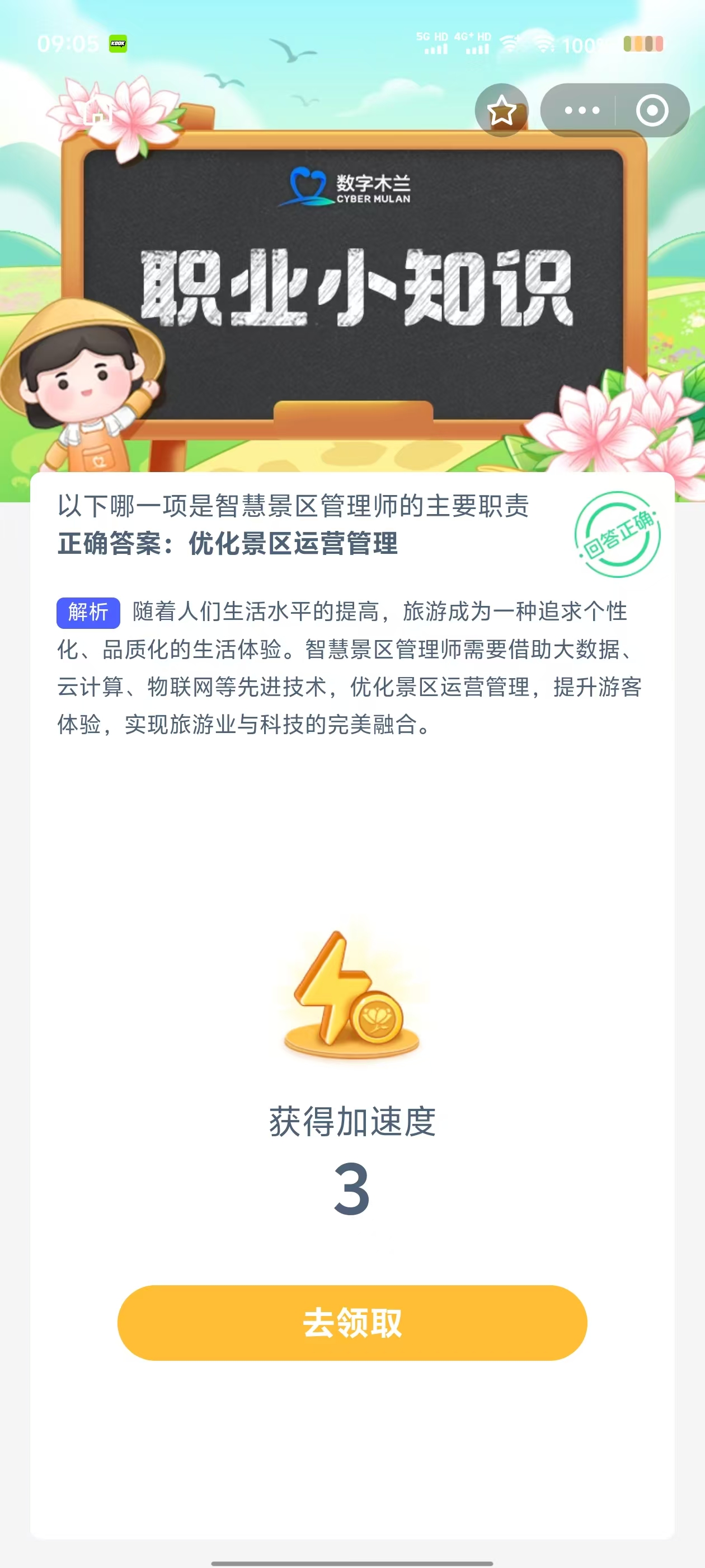 3、选择正确答案,答对可得“产速+3/时”,答错也有“产速+1/时”,奖励有效期为24小时;