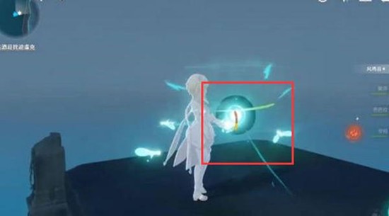 中央圆形平台生成一个更大的绿色光球,使用风元素攻击击破。