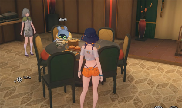 2、完成方法:任意时间段,传送到饮茶仙宴会厅,在2楼与好味布交互即可完成。(如若没有可以将时间调整至下午)。