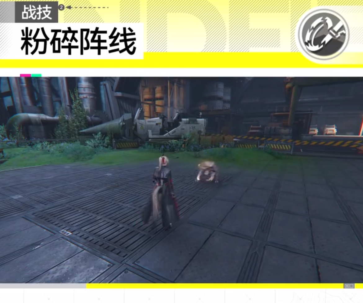 战技·粉碎阵线:对正前方敌人进行两次斩击,造成高额伤害并附加碎甲效果,增加敌人所受物理伤害。