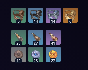 号角系列:沉重号角×23、黑铜号角×27、黑晶号角×41
