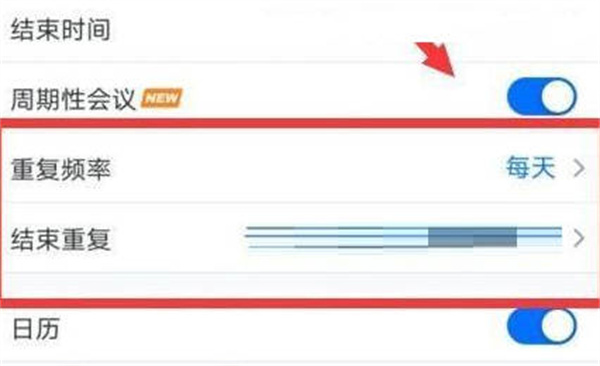 根据需求设置 重复频率、结束时间,确认后即可创建周期性会议。