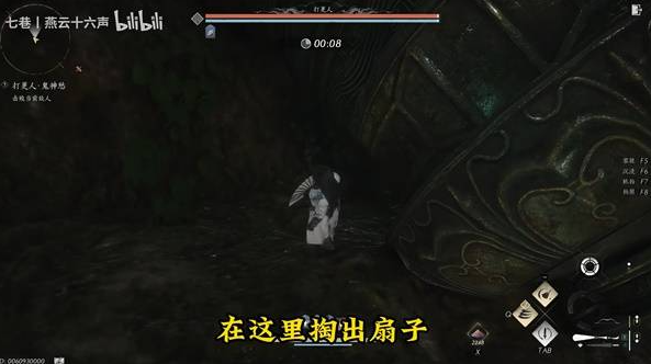 使用扇子长按蓄力技能持续消耗BOSS血量。