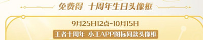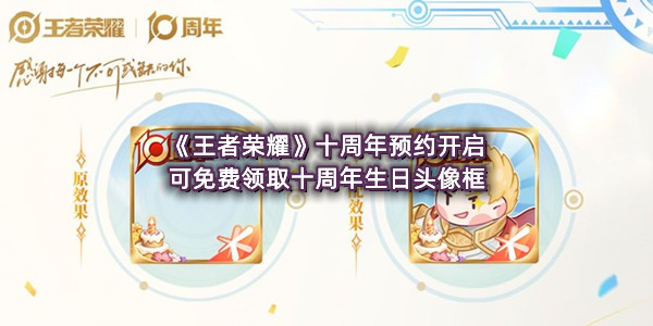 以上就是指玩手游网小编为你带来的《王者荣耀》十周年预约开启,可免费领取十周年生日头像框的全部内容,更多精彩游戏资讯攻略尽在指玩手游网,感兴趣的小伙伴欢迎点击关注收藏本网站哦。