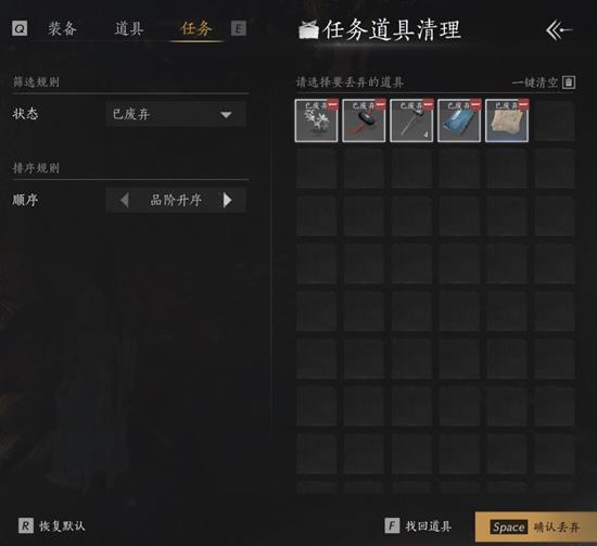 游侠们可以在「筛选排序」界面通过分类筛选查找需要的道具,无论装备、养成材料还是任务道具,都能快速定位,节省时间。