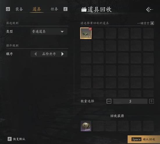对于不再需要的道具,可在「回收」界面进行回收。新增的「一键回收」功能可快速整理过期道具、废弃任务道具及可回收道具,让行囊整洁有序。