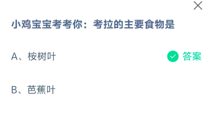 小鸡宝宝考考你:考拉的主要食物是?这是今天《支付宝》每日一题的问题,相信我们很多用户都很想知道这个问题的答案是什么?这么一个可以领取饲料的机会相信我们很多用户都不想错过,这里指玩手游网的小编为你带来了2025《支付宝》12月17日每日一题最新答案介绍(1)的全部内容,喜欢的小伙伴欢迎点击进入看看吧。