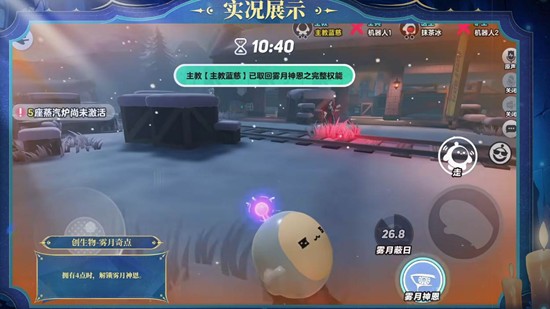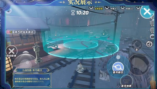 蓝慈长按主动键在指定位置创造雾月奇点,这片球状领域具单向视野:内部能清晰观察外界,外侧敌人无法看见其中。