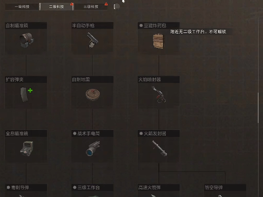 轻机枪并非游戏开局即可制作,必须先解锁对应科技分支。该分支属于“机枪”科技树,而解锁科技树的前提是角色达到特定等级。