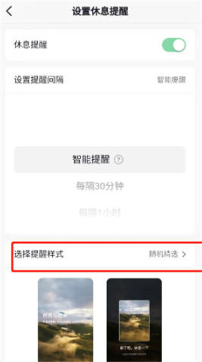 当然,你也可以不关闭,点击进入可选择提醒间隔和具体提醒样式。