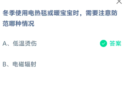 冬季使用电热毯或暖宝宝时,需要注意防范哪种情况?这是今天《支付宝》每日一题的问题,相信我们很多用户都很想知道这个问题的答案是什么?这么一个可以领取饲料的机会相信我们很多用户都不想错过,这里指玩手游网的小编为你带来了2025《支付宝》12月20日每日一题最新答案介绍(1)的全部内容,喜欢的小伙伴欢迎点击进入看看吧。