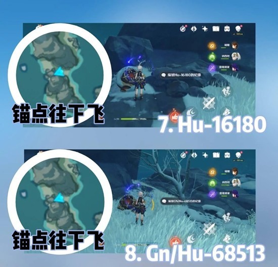Hu-16180、GN/Hu-68513:从传送 星荧洞窟锚点 出发,飞到标记处小山前即可看到 2 个遗迹守卫。