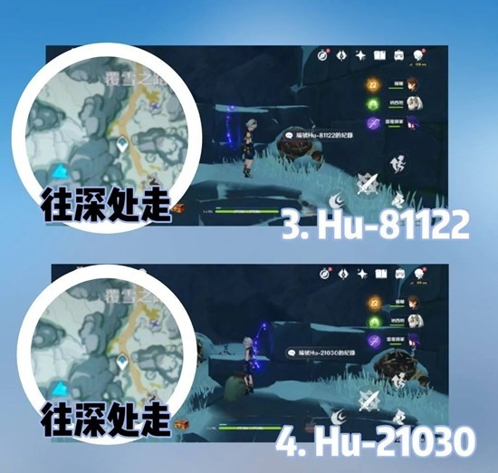 Hu-31122:暴风雪强烈,寒冷值上升快。注意寒冷值,附近有火柱可开启或用火系角色点亮,沿路有怪物,小心应对,悬崖边需注意安全。