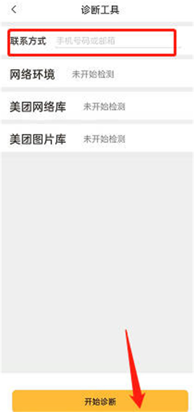 3、进入 诊断工具 后,填写对应联系方式,点击 开始诊断 即可。