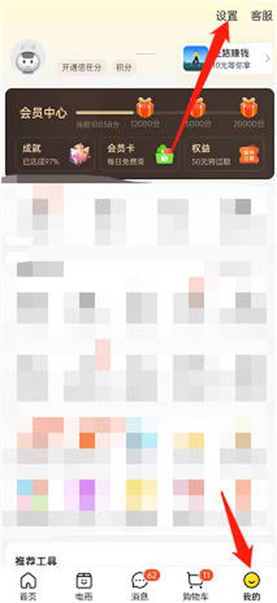 1、我们打开 美团 软件,点击右下角 我的,然后点击右上角 设置。