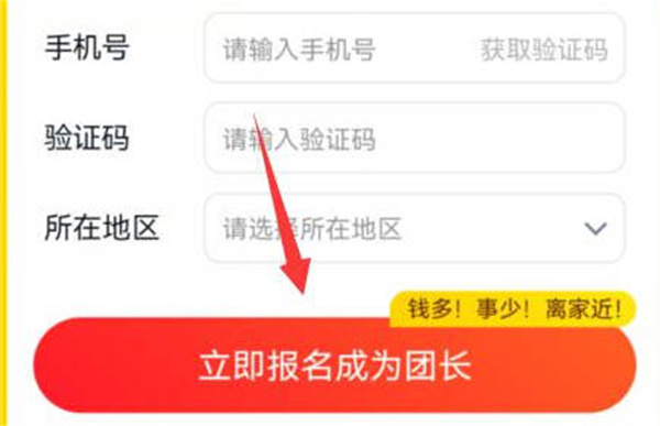 3、进入 团长招募 后,填写对应信息,点击 成为团长 即可,这样就可以设为自提点了。