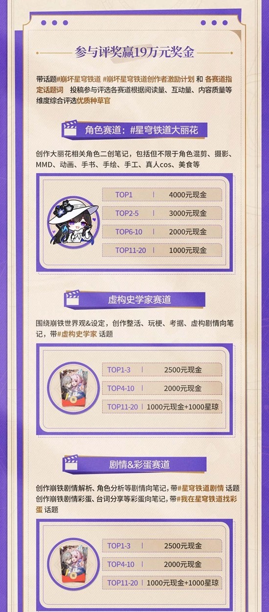 活动规则及详情可查阅图片,或搜索 「崩坏星穹铁道创作者激励计划」 前往活动页面了解更多信息。